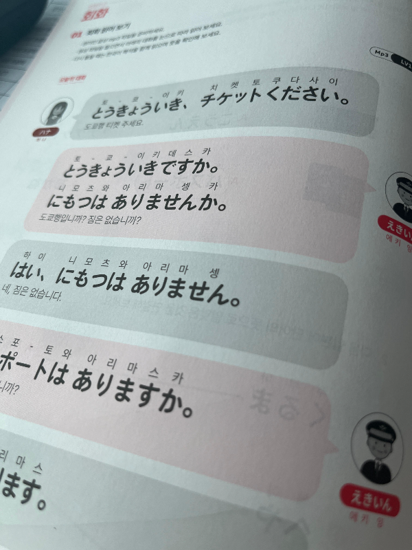 とうきょういき ですか? にもつ は ありませんか。(도쿄행입니까? 짐은 없습니까?)