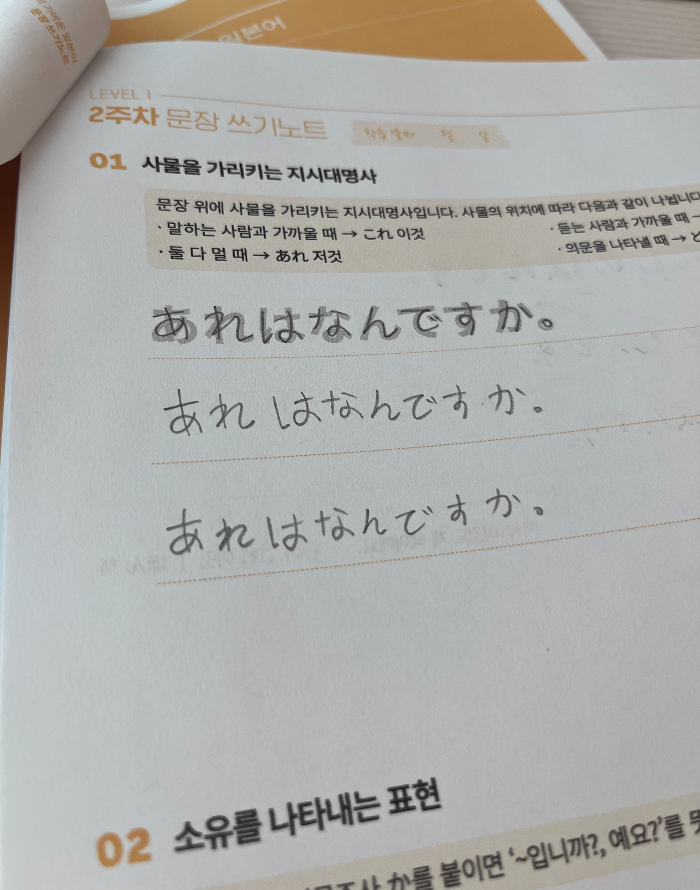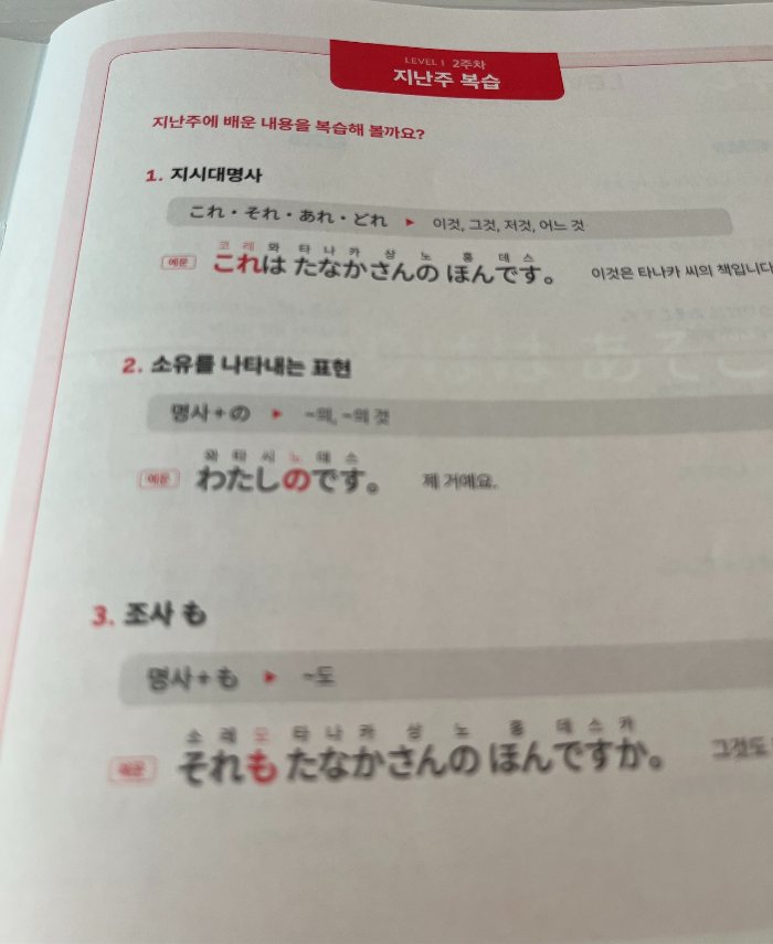 3주차 단어 표현&회화 부분에서는 장소에 대한 지시대명사와 요구/부탁과 관련된 기본 단어와 문장을 배웠어요.