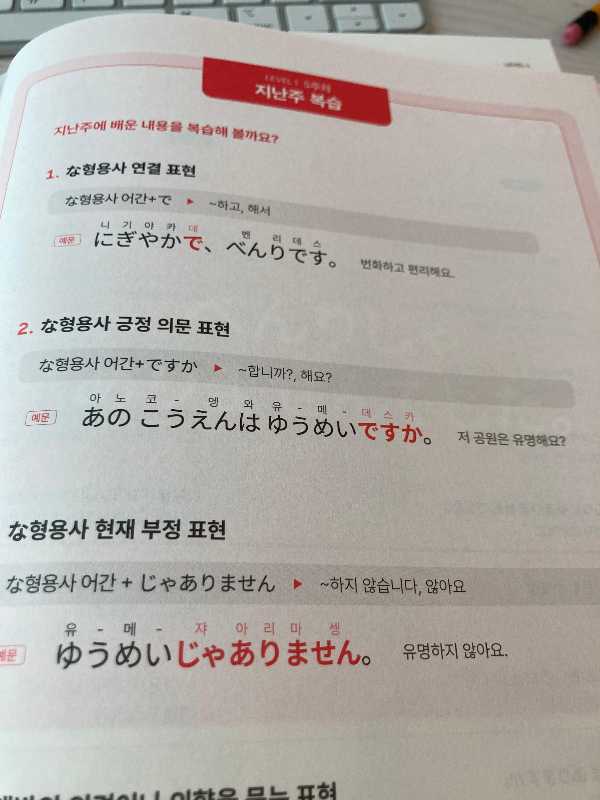 형용사 연결 표현, 긍정·부정 의문 표현들을 다시 한 번 써보면서 정리했어요.