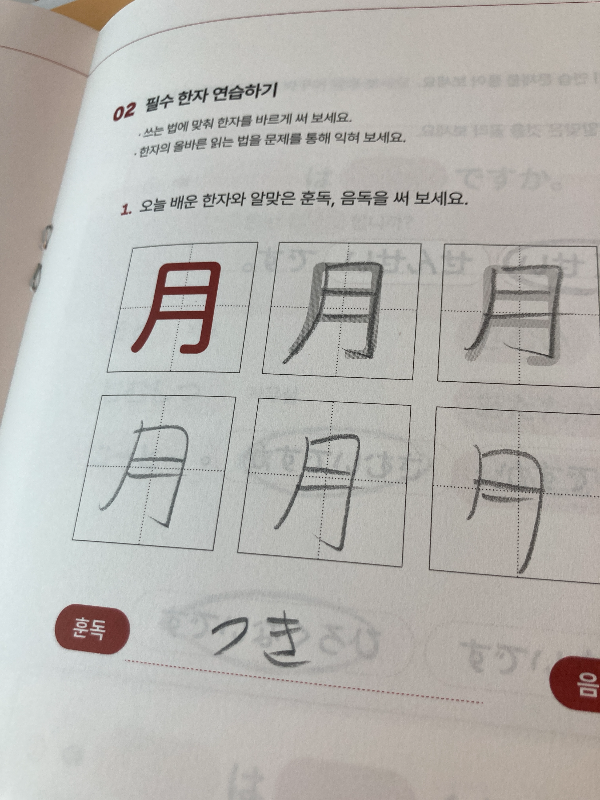 음독은 [게츠, 가츠], 훈독은 [츠키]인데 문맥에 따라 읽는 법이 달라져서 재미있었어요.