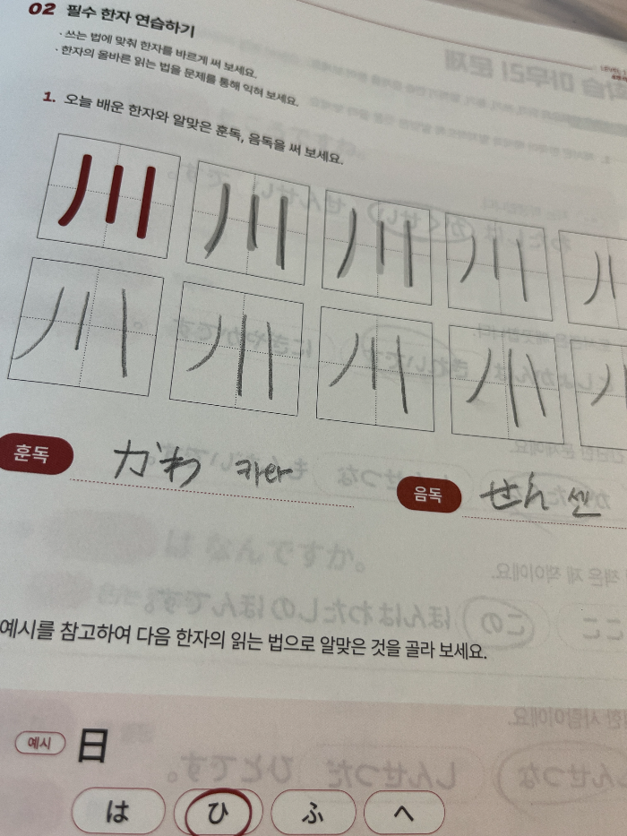 음독은 [센], 훈독은 [가와]인데, 3주차에 배운 산(山)처럼 문맥에 따라 읽는 법이 달라져서 재미있었어요.