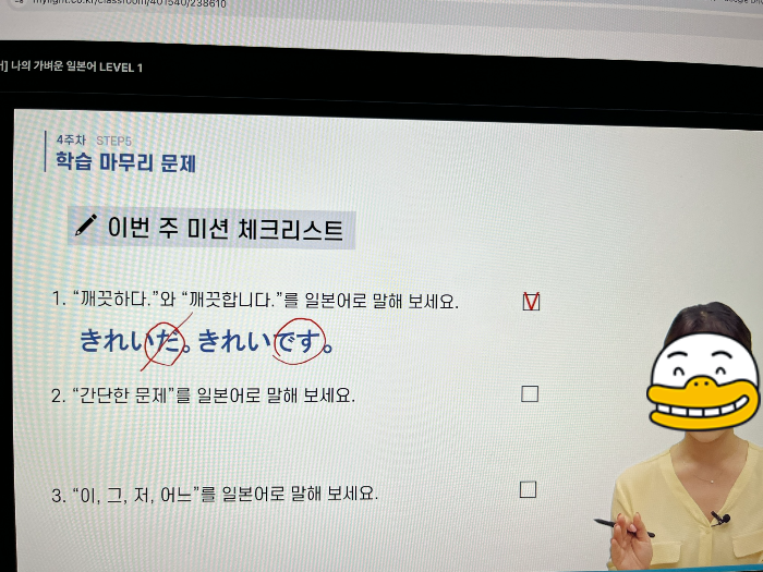 4주차를 마치고 보니 벌써 일본어로 상당히 다양한 표현을 할 수 있게 된 것 같아요.