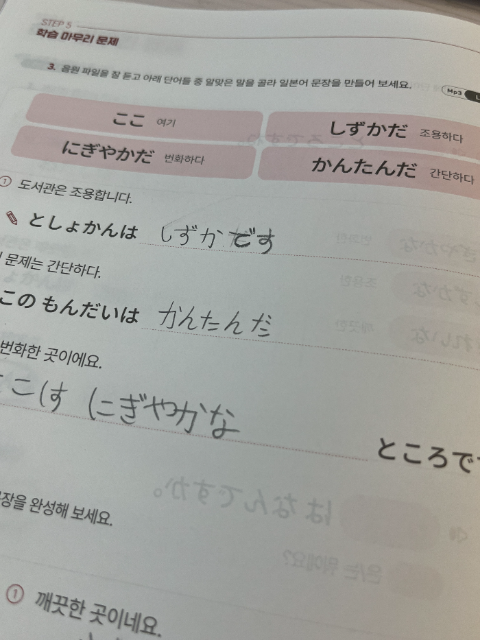 이번 주에는 な형용사를 본격적으로 배웠어요.