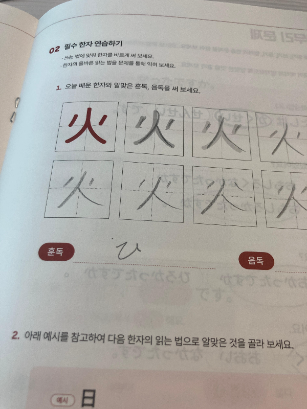 이번 주 한자는 불 화(火)에 대해 배웠어요.