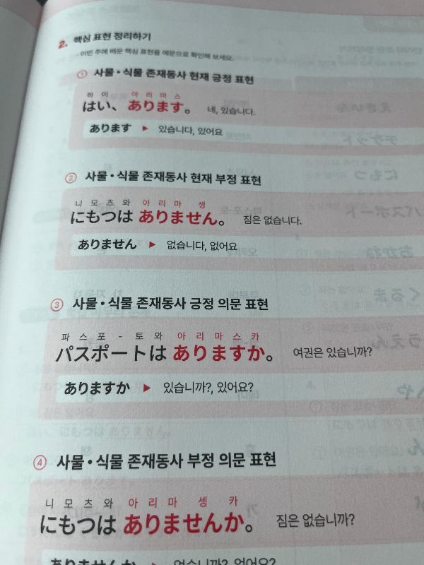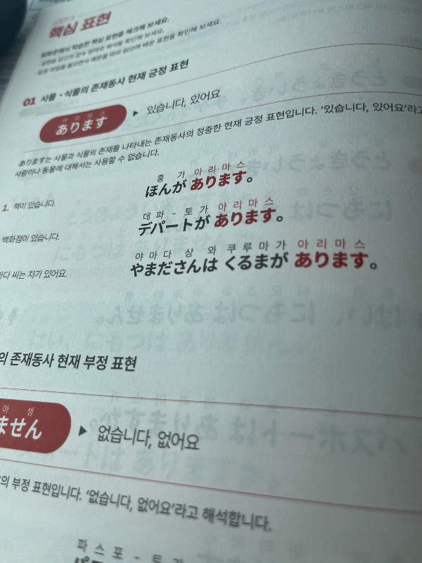 - 현재 긍정 표현: [명사]が + [あります] (~이 있습니다, 있어요)