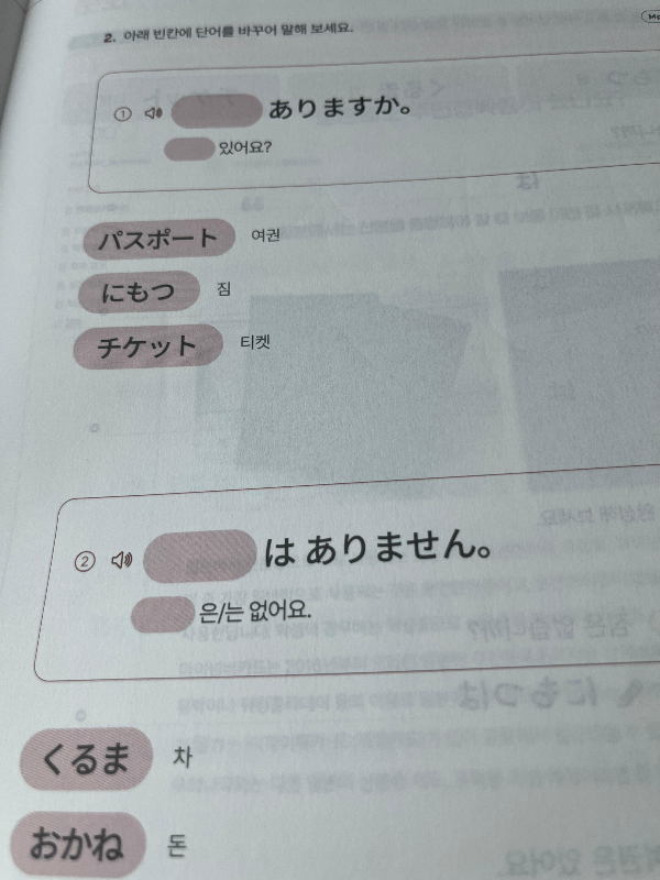 - 부정 의문 표현: [명사]が + [ありませんか] (~이 없습니까?, 없어요?)