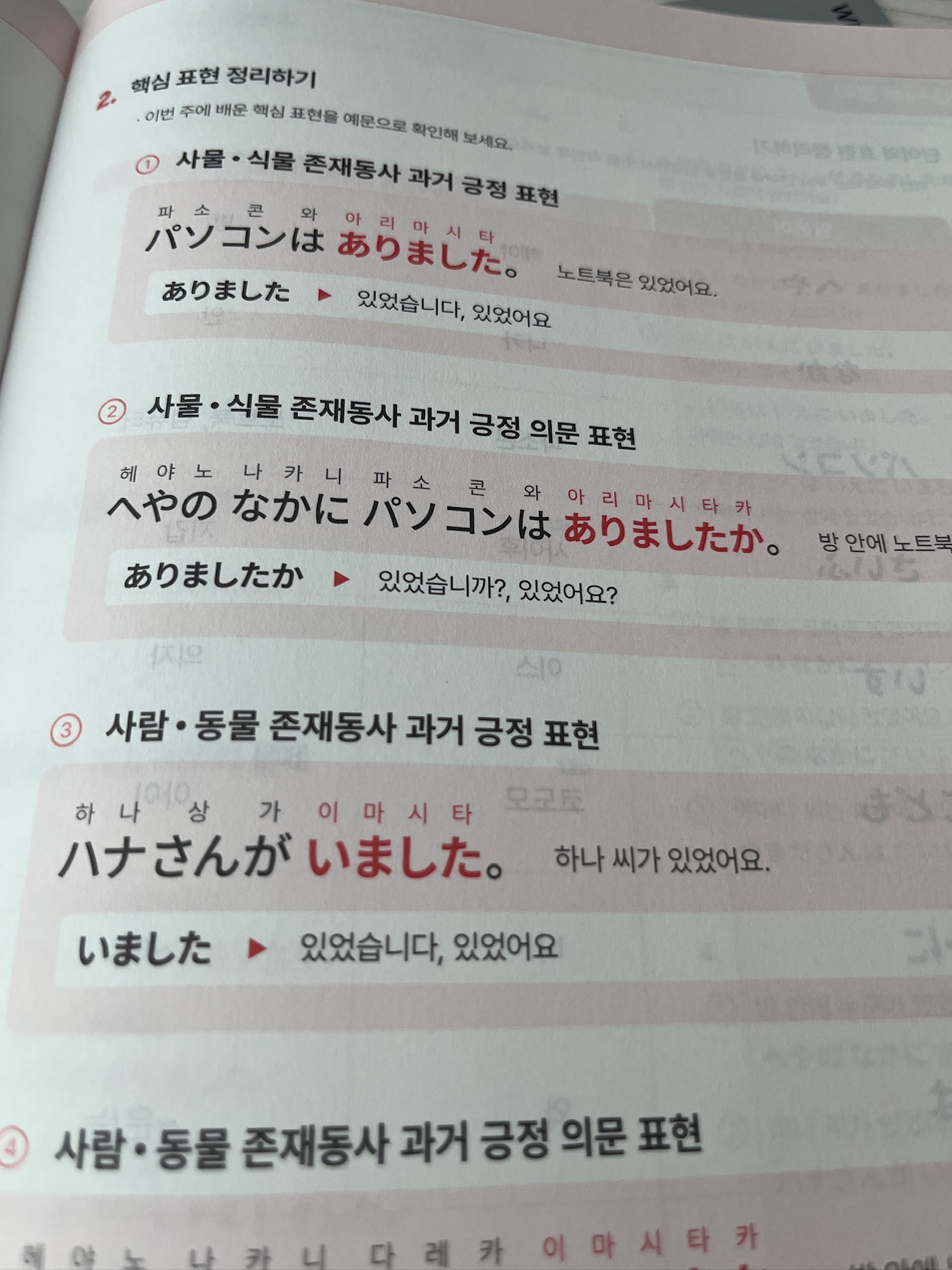 - 사람·동물과거 긍정 표현: [명사]が + [いました] (~이 있었습니다, 있었어요)
