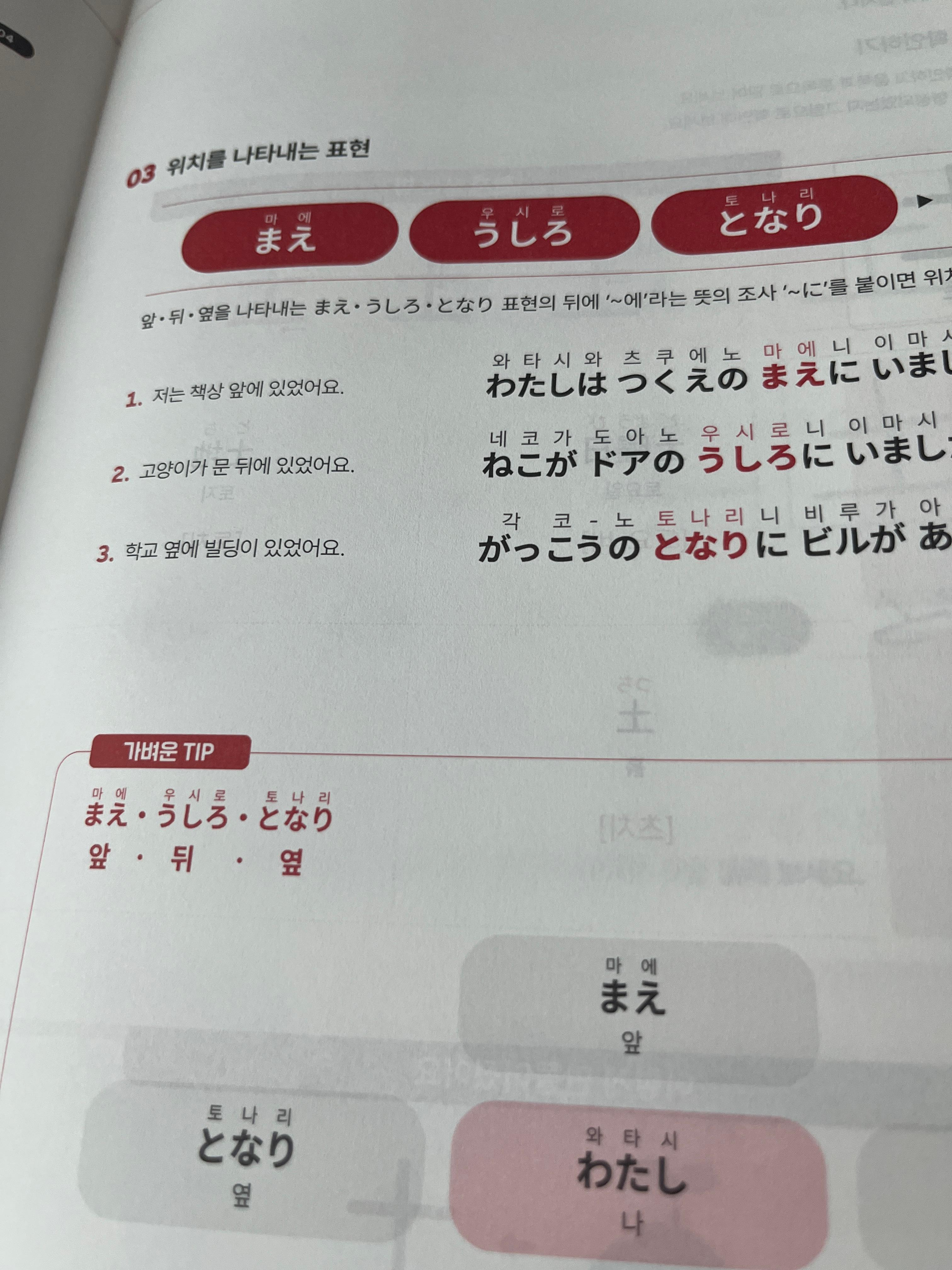 그리고 위치를 나타내는 표현도 함께 배웠어요.